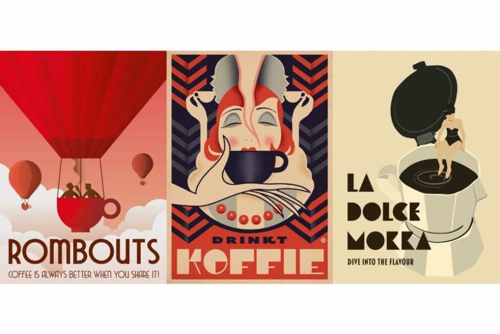 In partnership with Rombouts cafés and Sabam, Arômes illustrés was the subject of a competition inviting professional and amateur illustrators living, working or studying in Belgium to explore the world of coffee through the graphic codes of Art Deco. The finalists' works are on display here in this iconic Brussels venue, a place of conviviality and culture, a veritable hub of social interaction, with a café at its heart.