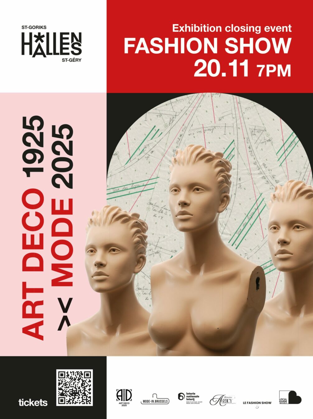 On November 20 at 7 PM, the last edition of LE FASHION SHOW takes place at the Halles Saint-Géry, in collaboration with Mode-in.Brussels. This closing runway event of Art Deco 1925 >< Fashion 2025 showcases ten Brussels designers. Blending fashion, dance, and visual performance, it’s a unique celebration of local and contemporary creativity.